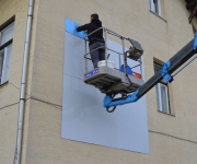 Now we could use the 3×3 gallery to hang it, before our project “Koroška Demokratična Postaja” would start, as the outside board is actually meant for it.