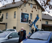 An online, livestream opening on December 1, was filmed outside, but obligated to be finished inside the raum AU. The result of this endeavor: the participation was surprisingly high, the text itself was quite read, and even though we did not manage to publish it anywhere else – the first project on our outside gallery space showed to be a success. The visual, dominating one of the entrance roads to the city worked wonderful – although not yet illuminated.